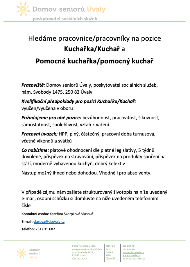Volná pozice - kuchyň
