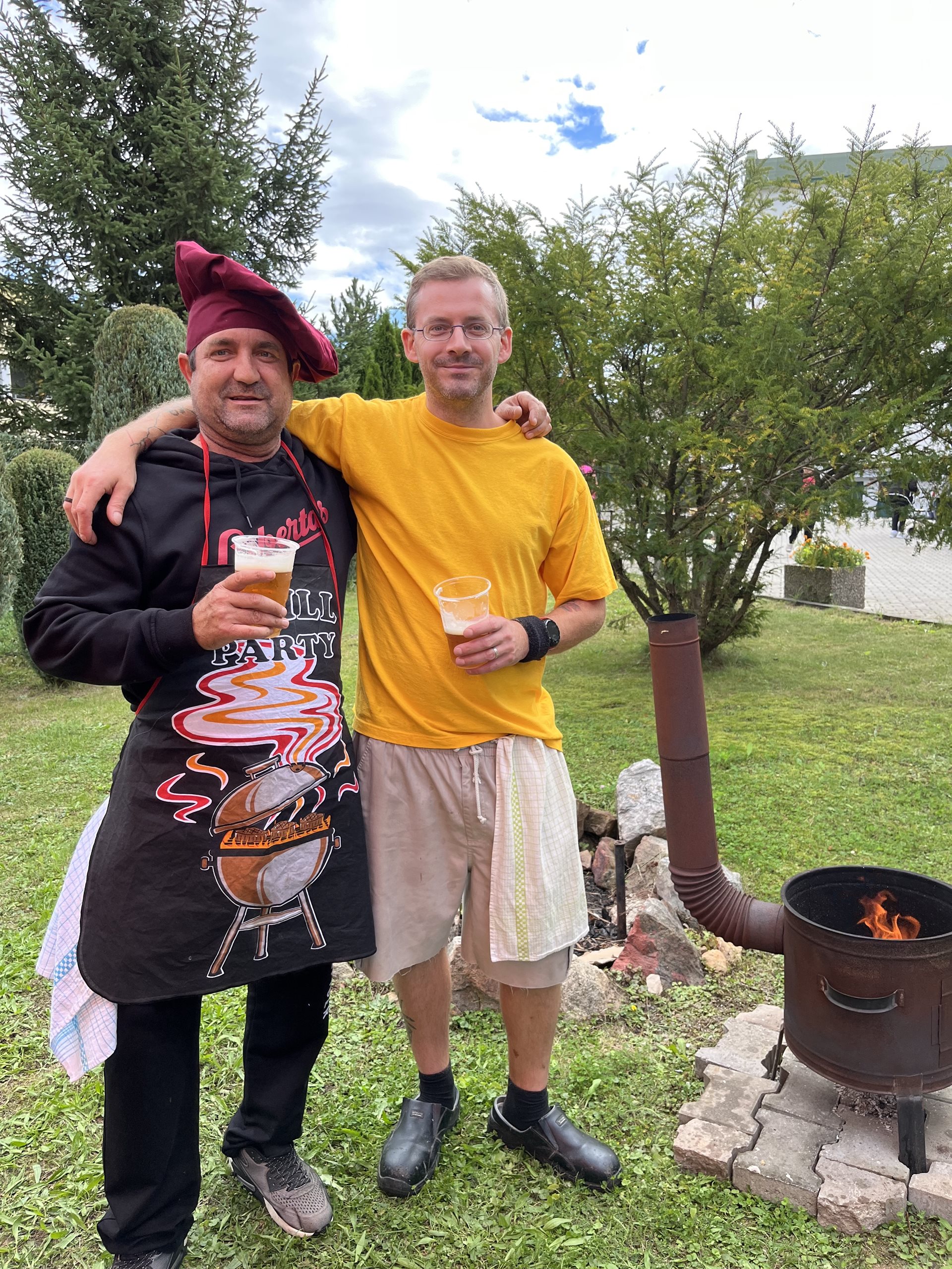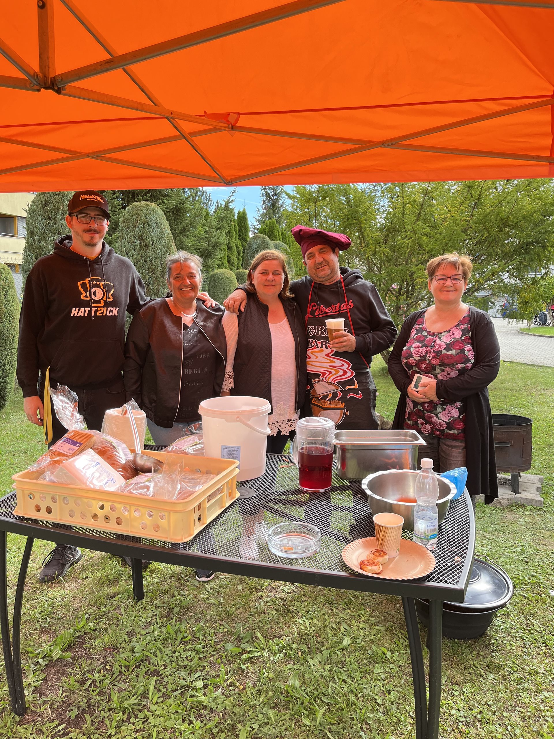 Pohoštění bylo připraveno v naší kuchyni a výborný kotlíkový guláš u nás na zahradě. Ke guláši neodmyslitelně